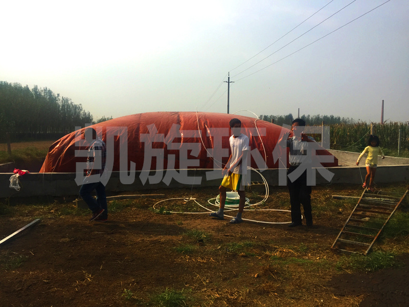 (2)沼氣原料如牛糞豬糞均可,直接進(jìn)料或堆漚3~5天最佳,通過堆漚能迅速形成厭氧菌的富集和生產(chǎn)條件,裝入沼氣袋后能以最短時(shí)間達(dá)到產(chǎn)氣高峰,若料液充足,一般2~5天即可產(chǎn)氣使用。剛開時(shí)產(chǎn)出的氣,如因氣體混雜不易燃燒,要排放掉,一般情況下排放1~2次,即可著火使用。一次投料可使用3個(gè)月左右(如果投料充足,能用很長時(shí)間),產(chǎn)氣明顯下降時(shí),提前備料堆漚換料。