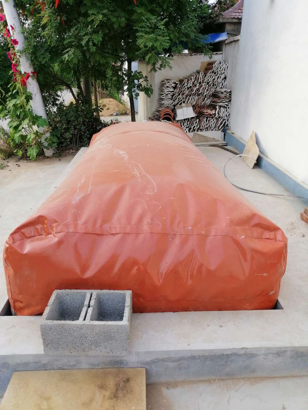 軟體可折疊沼氣池,是一種新型沼氣設備。主要包括:軟體可折疊沼氣發酵袋、沼氣儲氣袋沼氣升壓泵、脫硫器、分水器、沼氣輸送管及相關管件。設備的主體是軟體可折疊沼氣發酵袋,是用高強度塑性材料(雙面PVC夾網布或優質PVC抗拉膜)經高頻熱合制成,設有出氣孔、進、出料口。沼氣池壓力較低,對防滲漏要求不高。要選用低壓灶具,或在儲氣袋上加壓沙袋等重物,或使用升壓泵,以增加輸氣壓力。